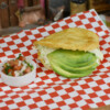 Reina Pepiada /Cheese empanada, stuffed after cooking with a chicken salad, topped with avocado slices.